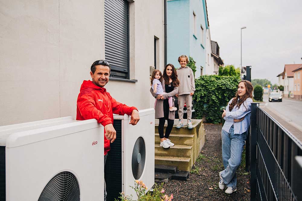 Familie Zeka in Bürstadt ist klimabewusst. Deshalb lässt sie ihr Doppelhaus mit Wärmepumpen beheizen. Natürlich mit Ökostrom von EWR.