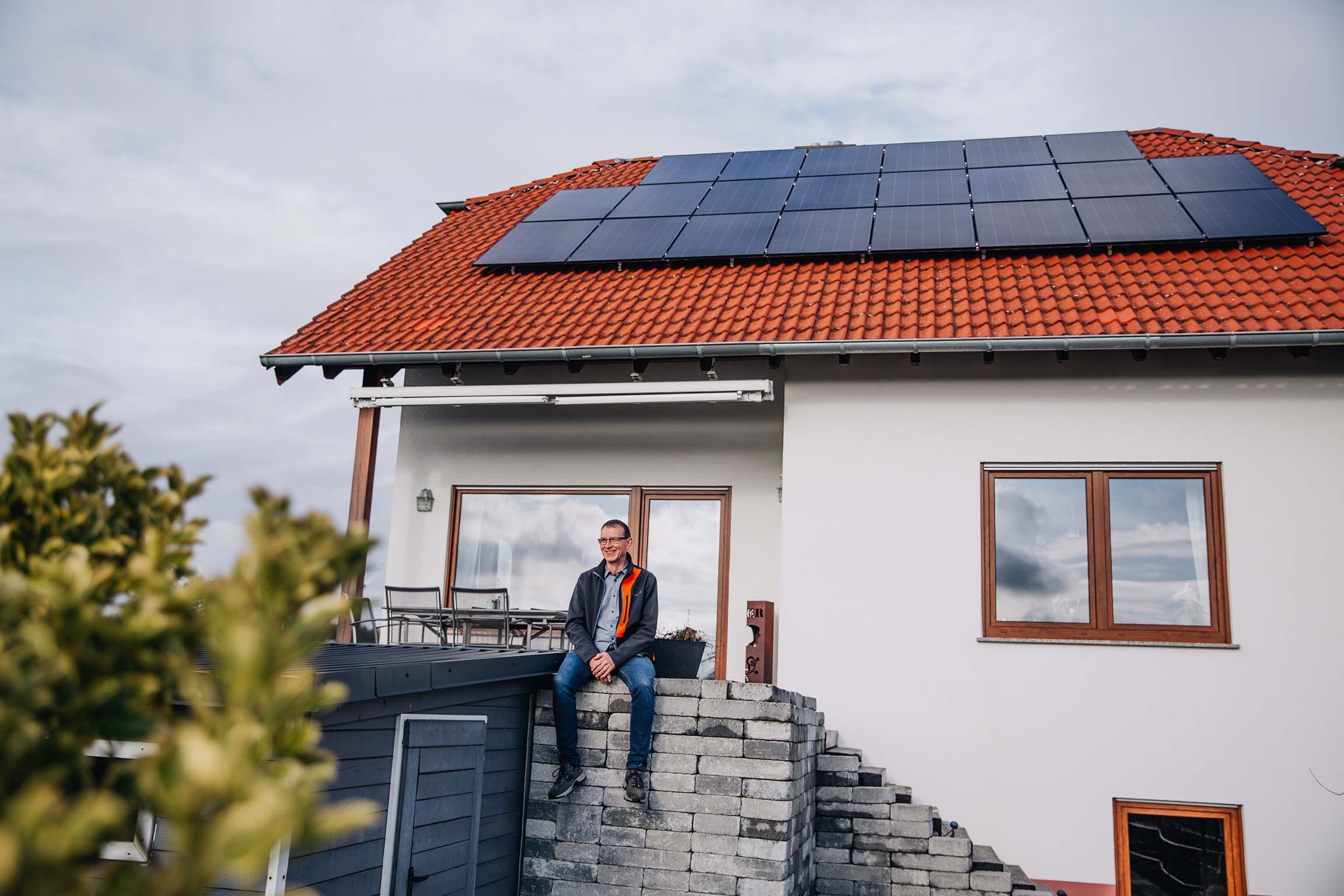 Für Stefan Stohr stand schon lange fest, dass er sich in Sachen Energie auf eigene Beine stellt. 2008 kamen die ersten Solarmodule aufs Dach, inzwischen versorgt der Nieder-Olmer sich mit weiteren Modulen zu 85 Prozent selbst. „Der Anschluss ans EWR-Netz hat dabei immer reibungslos funktioniert“, sagt Stohr. Seinen Gasanschluss nutzt er kaum, denn ein neuer Kaminofen – überwachbar per App und ausgezeichnet mit dem blauen Umweltengel – leistet die meiste Arbeit. Abgesehen von der Arbeitsleistung von Stefan Stohr, der das Holz selbst schlägt und spaltet: „Das macht mir einfach Spaß.“